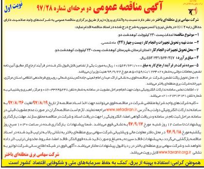 —– آگهی مناقصه ۲۸/۹۷