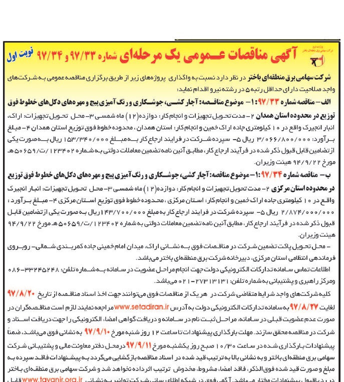 —– آگهی مناقصه ۳۳-۳۴