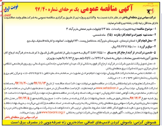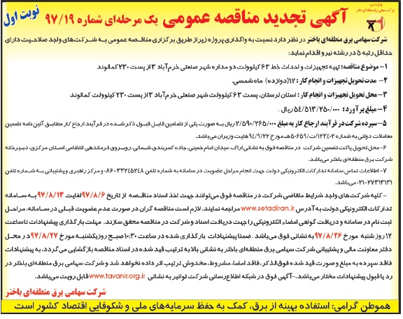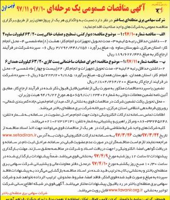 —– آگهی مناقصه۲۱-۹۷