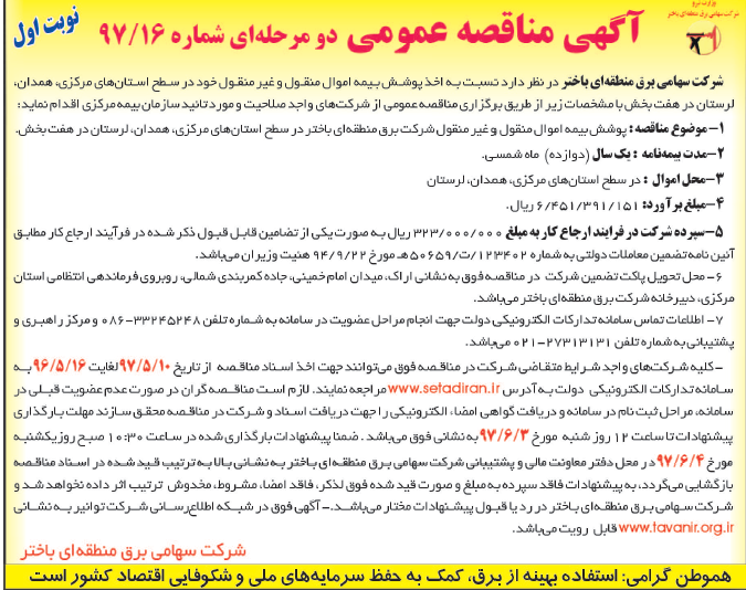 مناقصه مزایده ۹۷