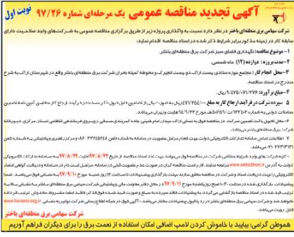 —– آگهی تجدید مناقصه ۲۶/۹۷