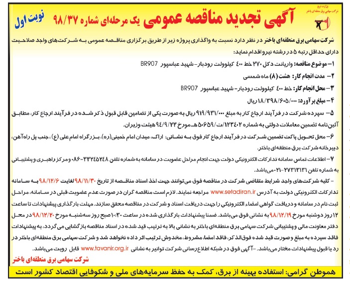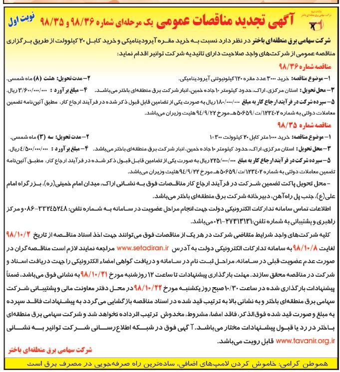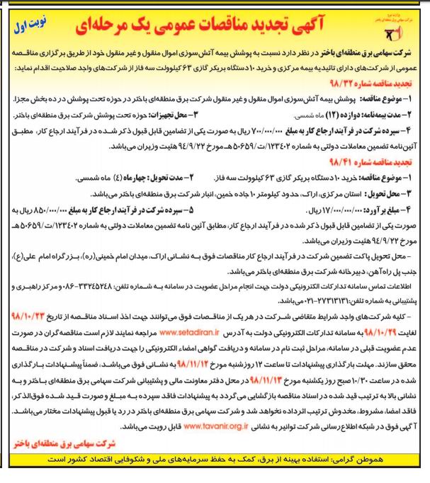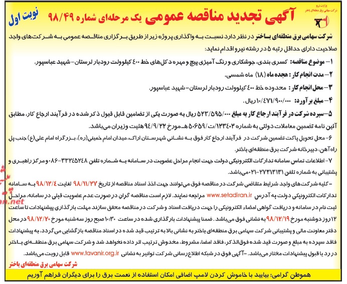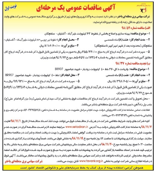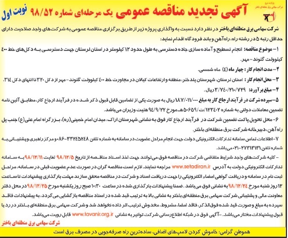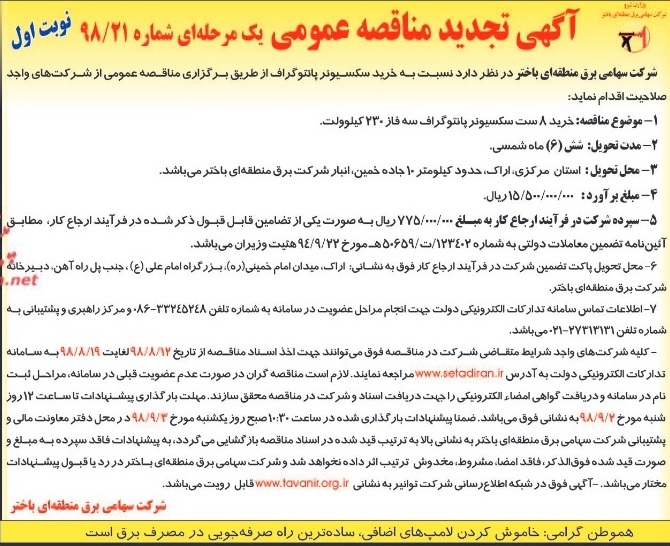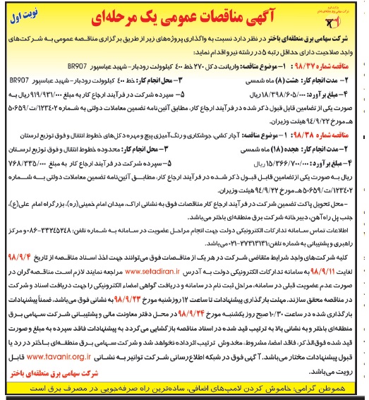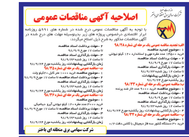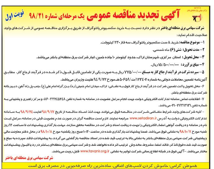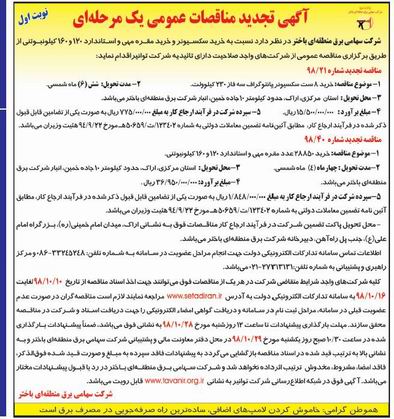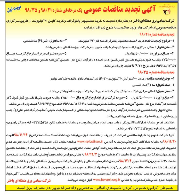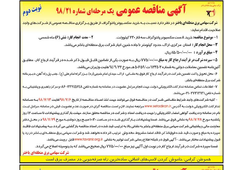 آگهی تجدید مناقصه شماره ۲۱ و ۴۰