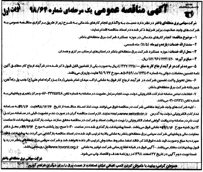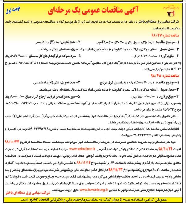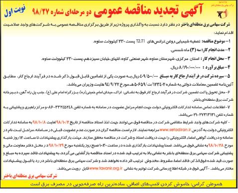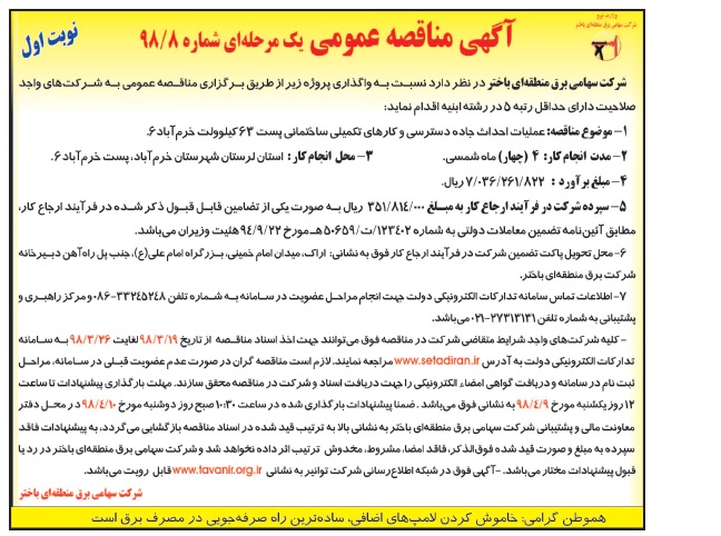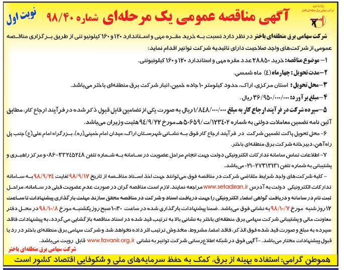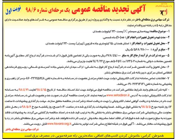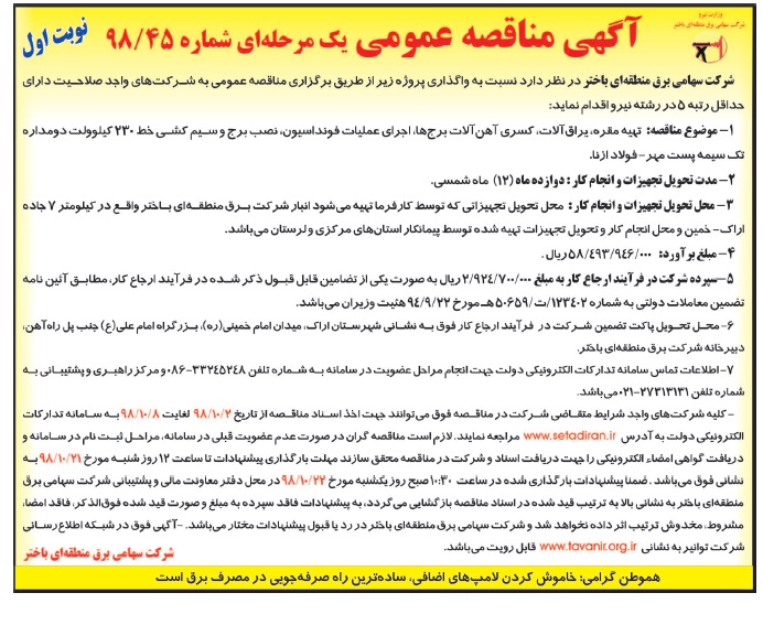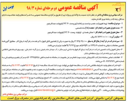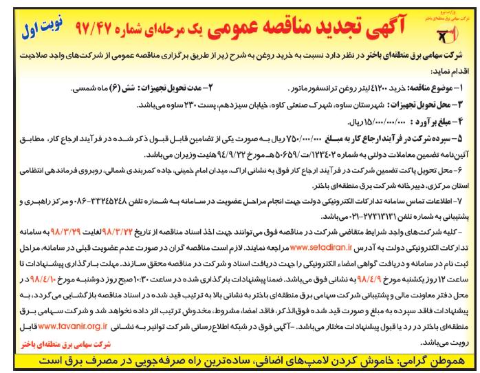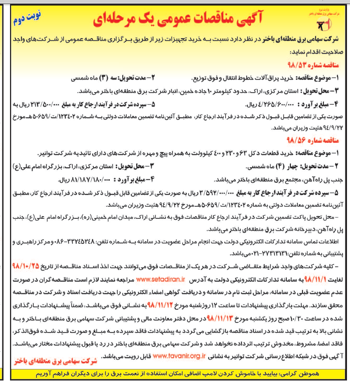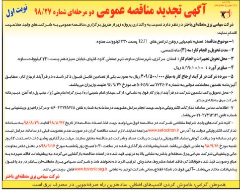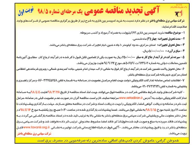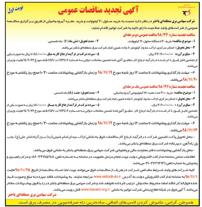 آگهی تجدید مناقصه شماره ۲۱ و ۴۰