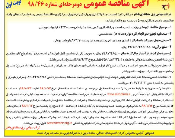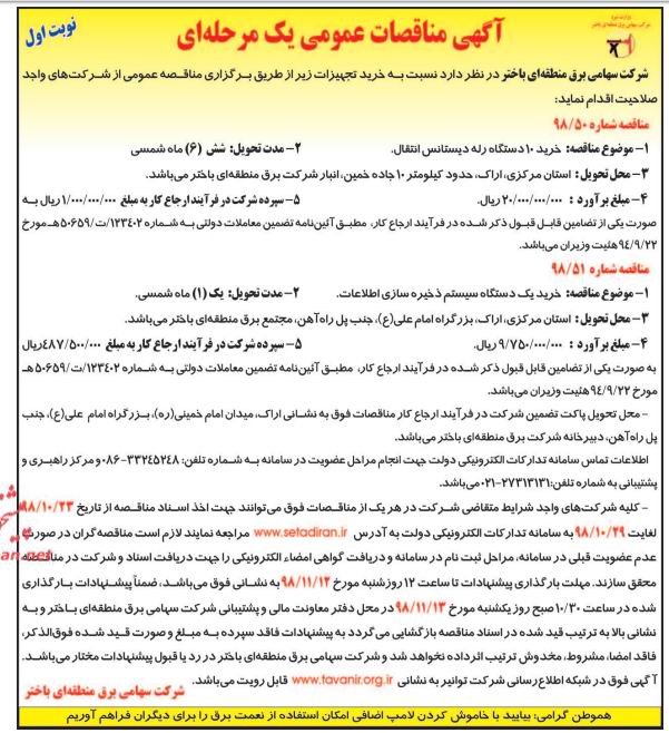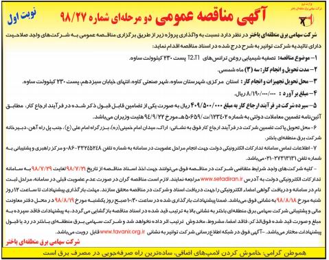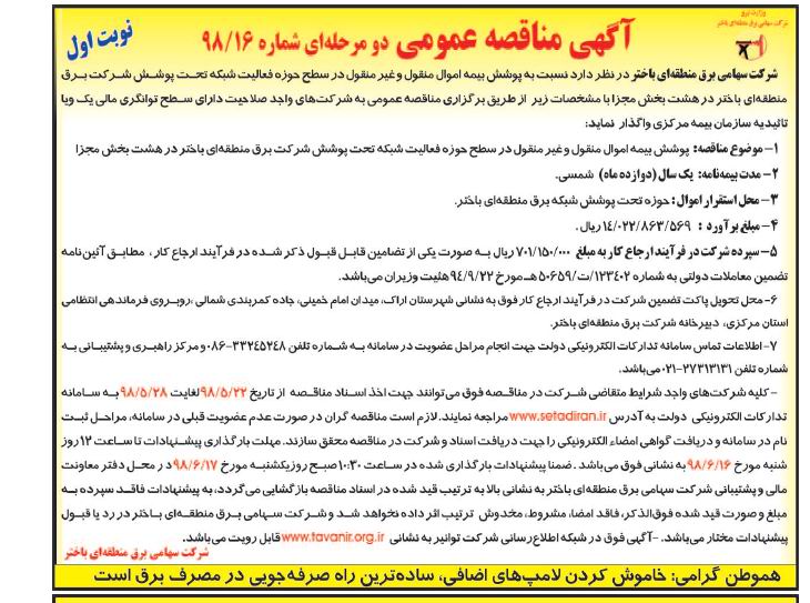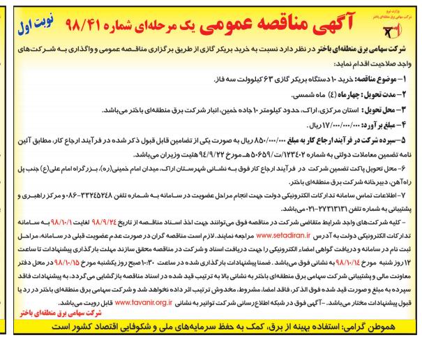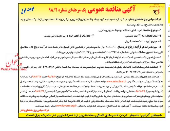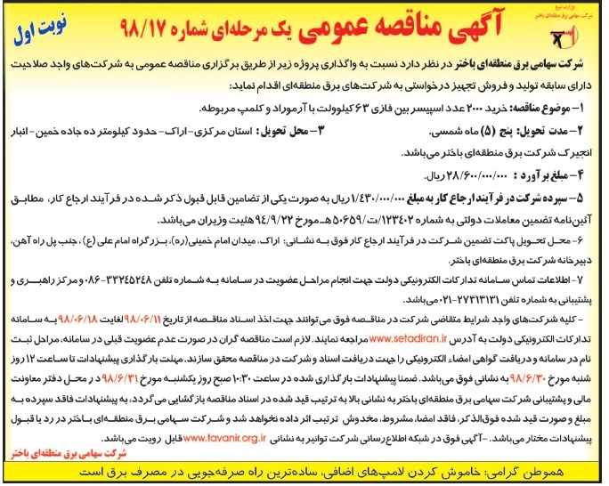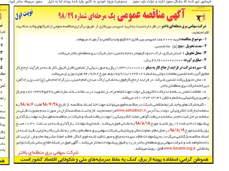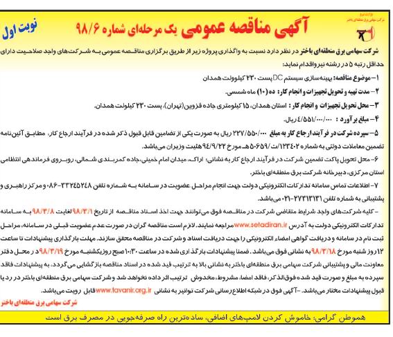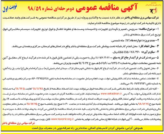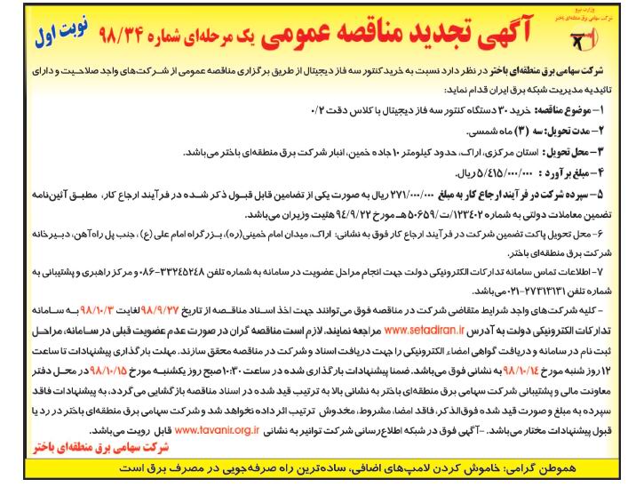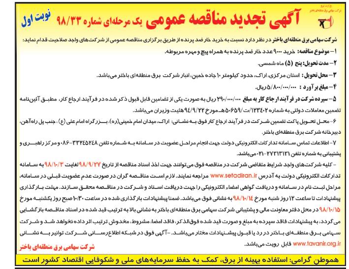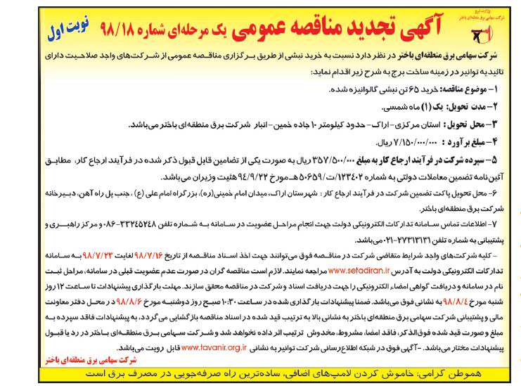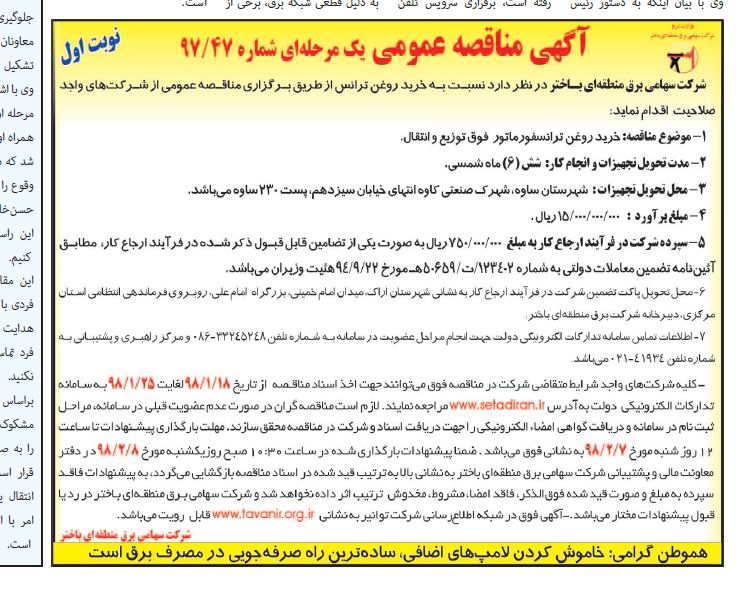آگهی تجدید مناقصه شماره ۲۱ و ۴۰